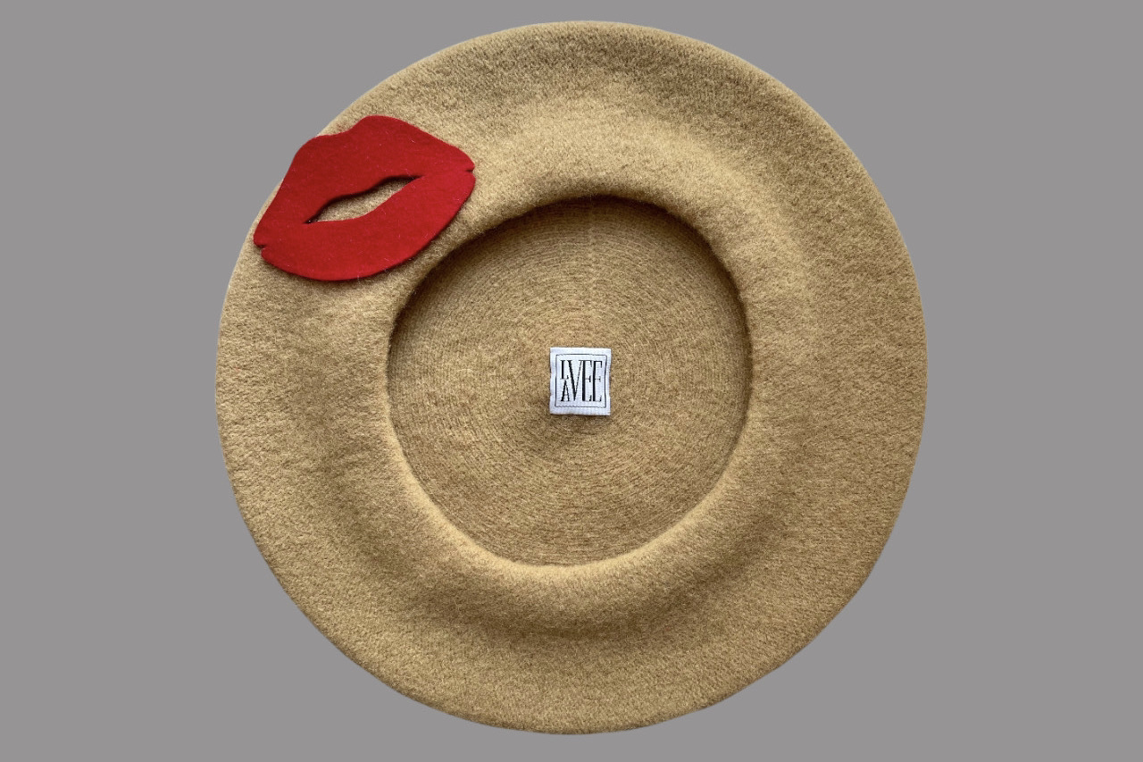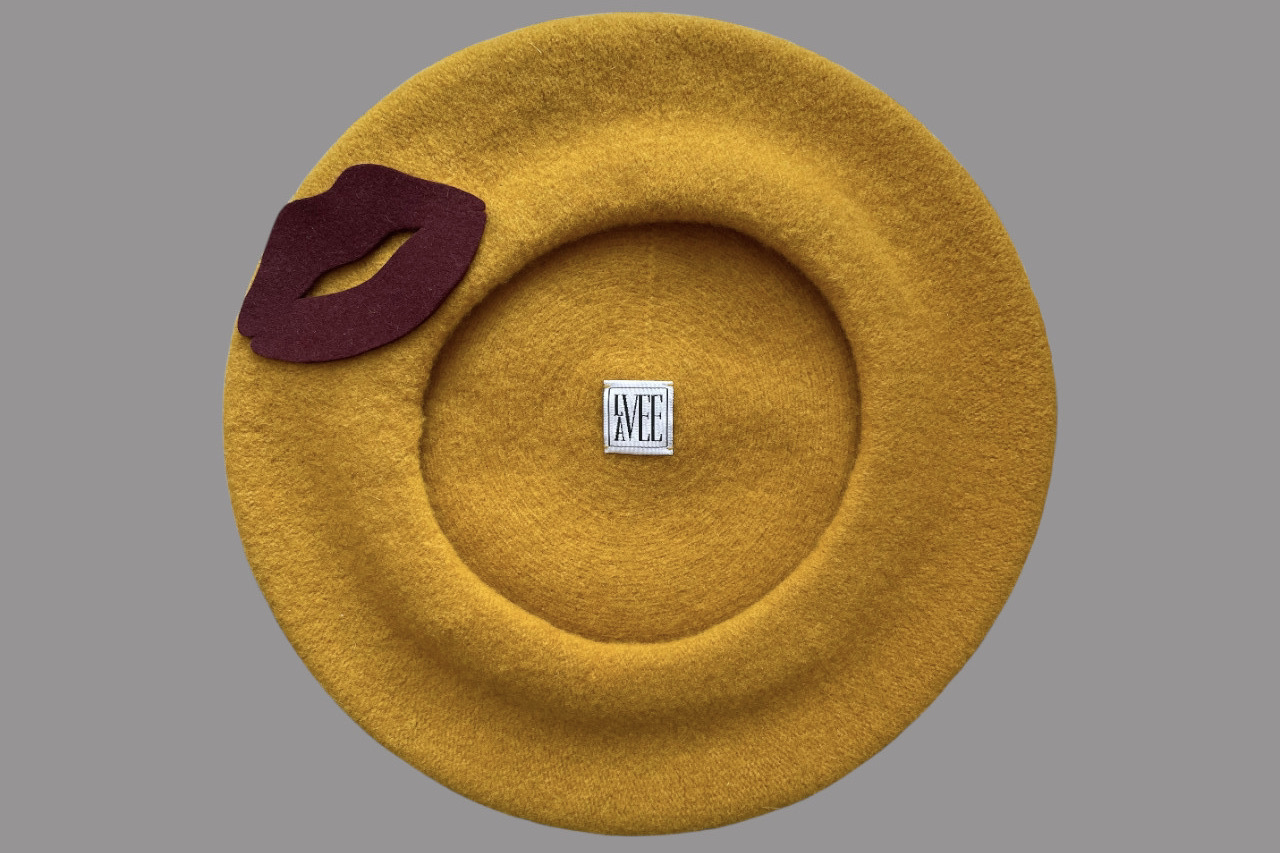 Available in Black, Navy, Camel, Rust and Mustard, each featuring handcrafted felt lips. Ready to ship within 1-2 working days.
